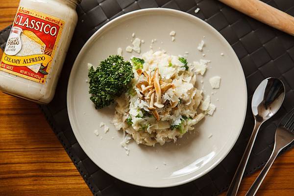 奶油燉飯是一道口感、味道上都非常濃郁滑順的料理,雖然感覺起來在製作上很困難,利用CLASSICO義大利麵-香濃白醬,和一些現成的材料就可以馬上地讓製作的難度大大的減低,並且還是保有他該有的乳香味喔。