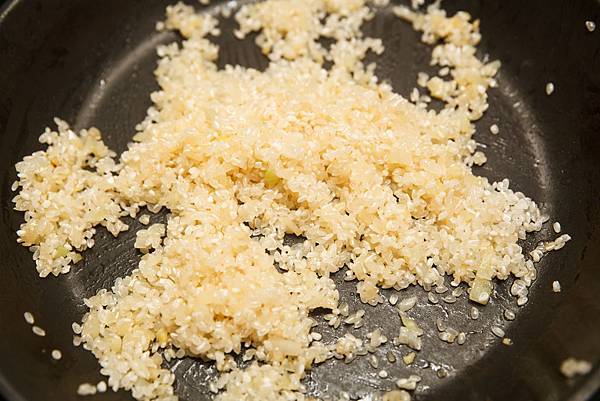 3. 接著加入Arborio米拌炒至米呈現半透明狀。