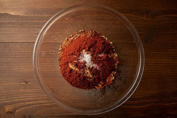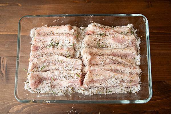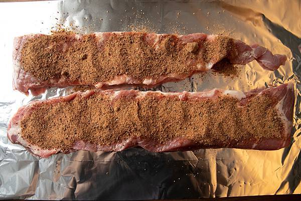 2. 接著將醃料均勻的撒在肋排上後醃製至少1個小時。