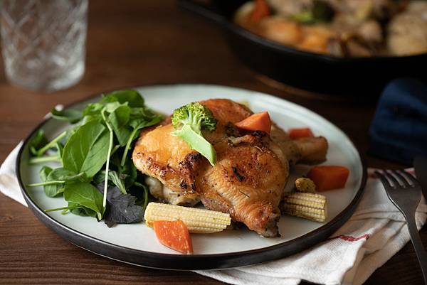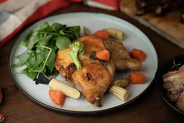 第二道則是點餐率很高的烘烤什蔬雞腿排