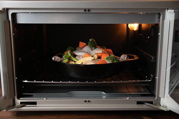 霧化不銹鋼的外型,看起來非常簡潔大方,並且因為使用微電腦控制,所以除了傳統烤箱的功能外,溫度控制更加精準,還有脫水、烘乾的功能,可做果乾等各式各樣的烤箱料理