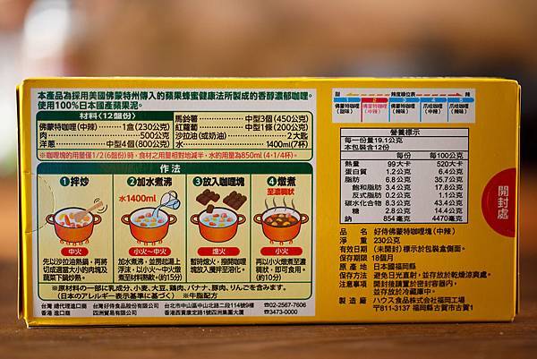 接著包裝的背後也有簡易的咖哩烹調方式,讓你可以輕鬆煮出美味咖哩。